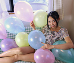 | 萌ちゃんのWebギャラリー第40弾。注目はパステルカラーの風船に囲まれたソファーでのグラビア。風船大好きな萌ちゃんならではの自然な笑顔が見られます。野外ポートレートのポージングも見事ですね。 |