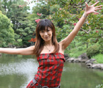 あやこさんのWebギャラリー第25弾。野外ポートレートでは珍しくキュートな笑顔を見せています。赤いチェックのミニワンピもあやこさんが着るとかっこよく決まるので不思議ですね^^ ベッドでは魅惑の胸の谷間が見られます。
