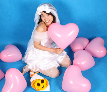 萌ちゃんのWebギャラリー第136弾。浴衣姿で寛ぐ萌ちゃん可愛いですね。ウェディングドレスではピンクのハート型風船に囲まれて嬉しそう。ビキニで見せるセクシーな表情にも注目です。